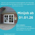 In der KiJuV Garage gibt es nun nach der langen Corona-Pause endlich wieder regulären Betrieb. Mit Freiraum für Eure Kinder zum Musikhören, Spielen, Abhängen und der Möglichkeit das Taschengeld für (eine begrenzte Menge) Süßigkeiten auf den Kopp zu hauen.